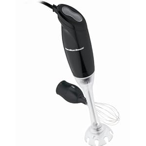 With the 200-watt Hamilton Beach hand-held blender, there’s no need to get out a heavy mixer and bowl. Drinks can be blended right in the glass, soups pureed in the pot, and cream whipped in a portable bowl. Great for quickly blending small amounts and perfect for vacation-home use, the blender comes with two attachments: an 8-1/2-inch sharp-bladed blending wand with a protective plastic sleeve, and a 7-1/4-inch stainless-steel whisk. Both attachments twist securely onto the power handle and easily remove for hand washing. On the end of the power handle a two-speed button gives the option of low or high speed, and a five-foot cord provides good reach. A one-year warranty covers the hand blender against defects.