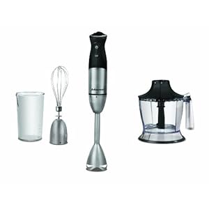 Enjoy nutritious soups, drinks, and salsas ready in seconds with a hand blender, chopper bowl, and whisk attachments. Stainless steel cutting assemblies provide greater durability and power through your prep work with 550-watt of power. Choose the right speed for the job with 5 variable speed settings, plus get an extra burst of power when you need it with the power boost button. Use the blending attachment to make soups directly in the pot or with the beaker for drinks and smoothies; switch to the wire whisk to whip up an easy meringue, then use the chopper bowl for a quick salsa. Comfort and elegance combine with a brushed stainless steel finish and ergonomic soft-grip handle. The 3-cup chopper bowl features a handle and slip-resistant rubber base to make chopping a breeze. Enjoy easy cleaning with a full range of dishwasher safe accessories and get inspired by the exciting recipes in the Use and Care manual. Plus, have the peace of mind of our exclusive 2-year limited warranty.